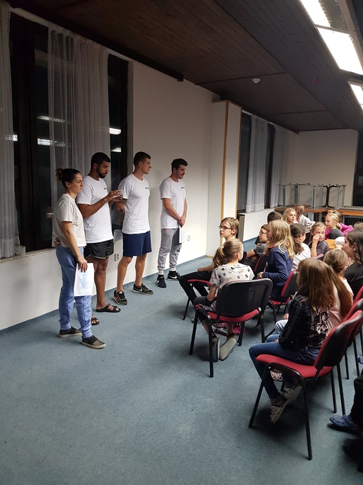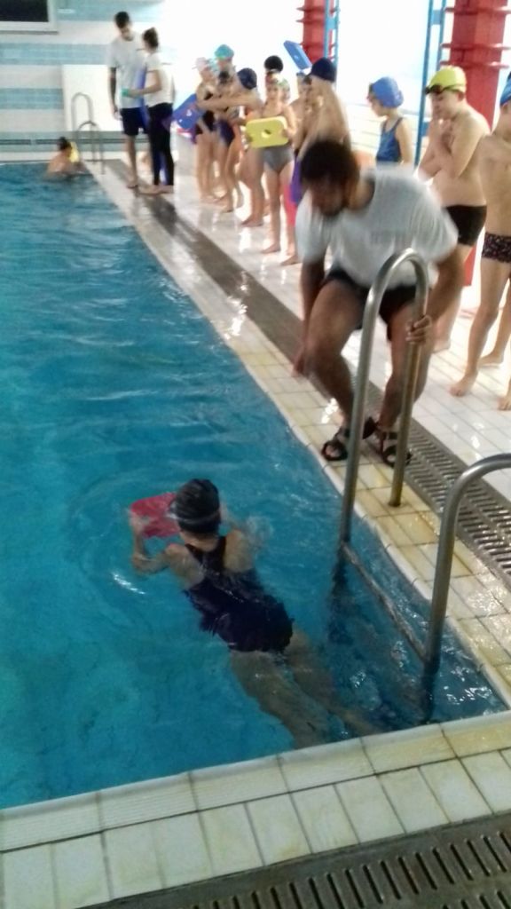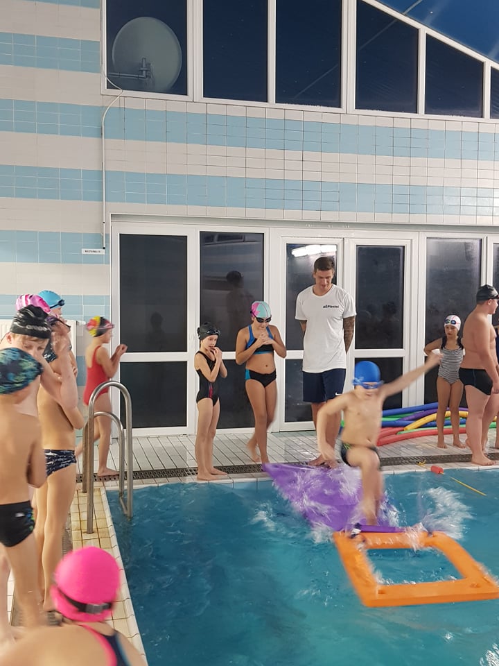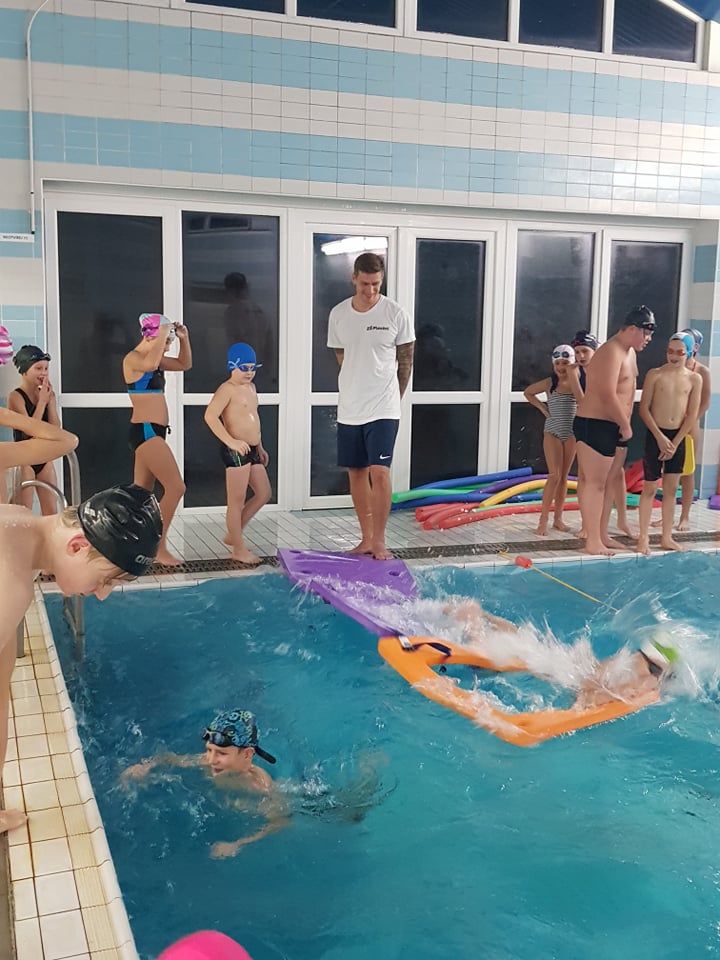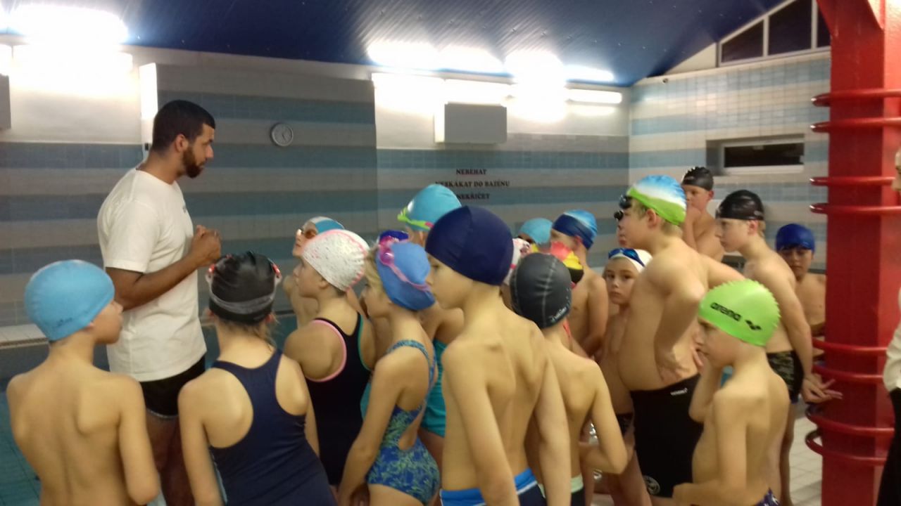 Fotografie z plavecké školy v přírodě.