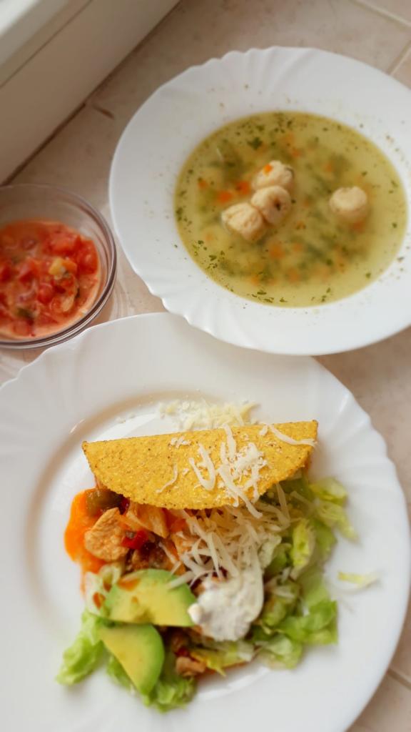 Drůbeží směs, rukolový salát, tacos