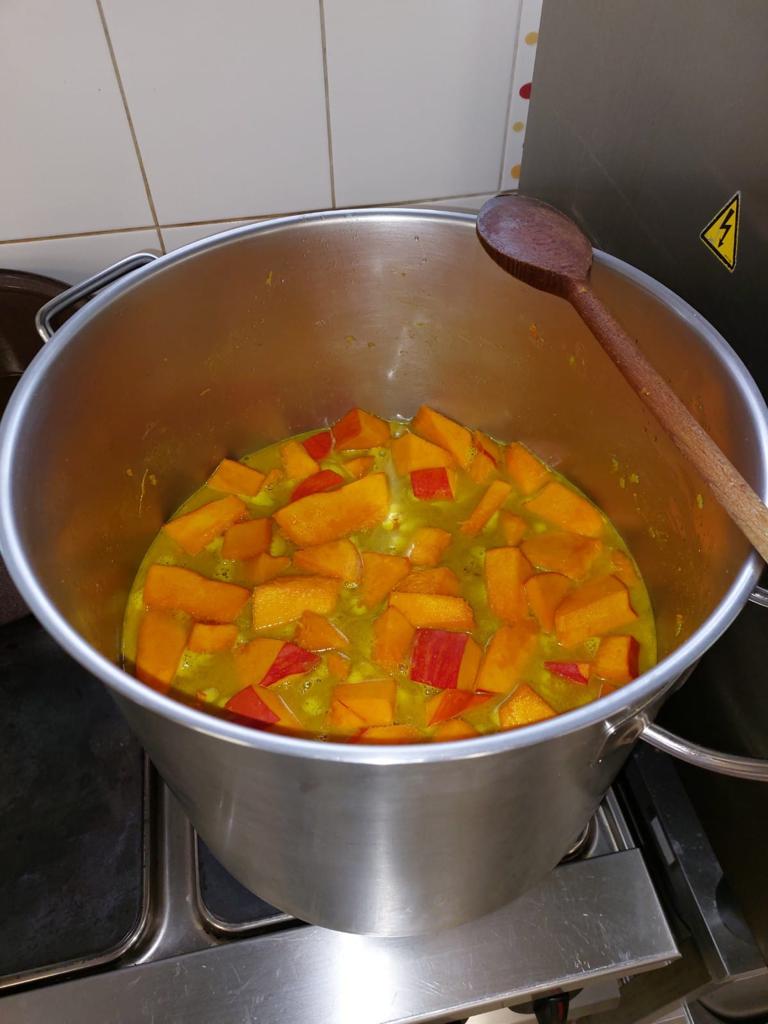 Dýňová polévka v přípravě