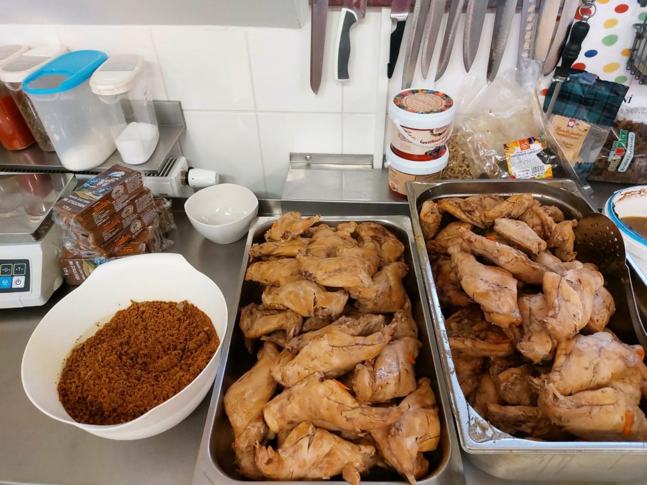 Příprava dnešního oběda - králík na černo a houskový knedlík