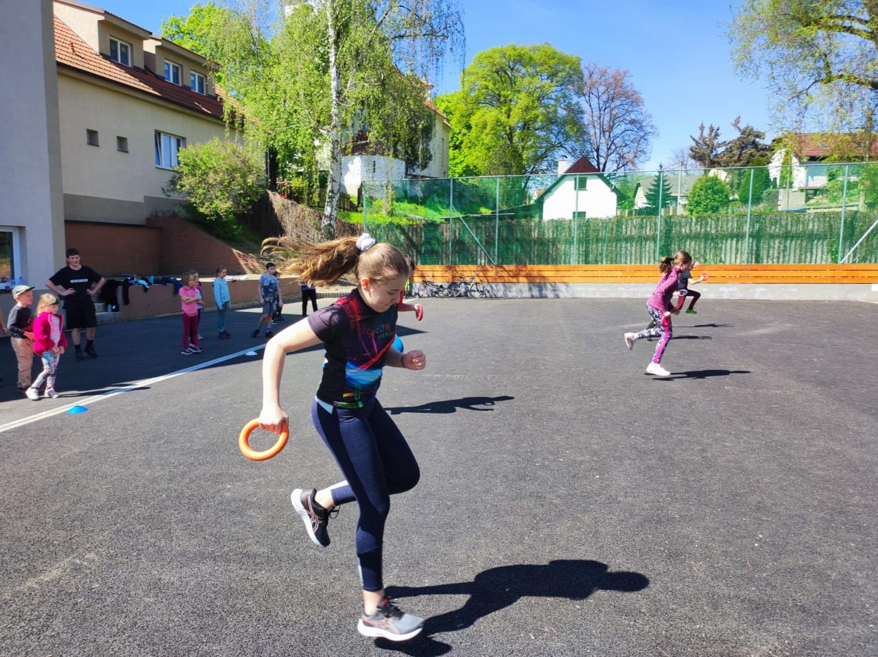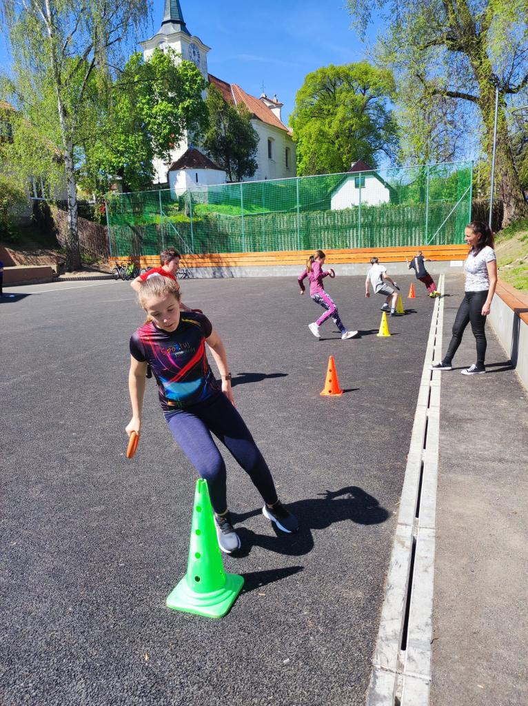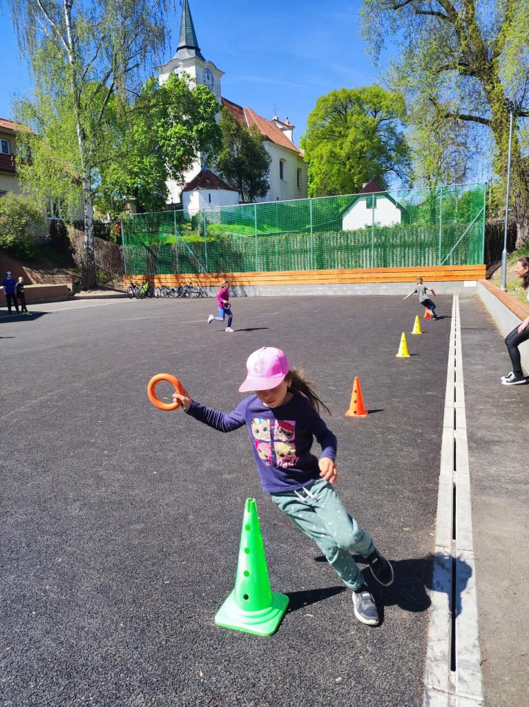Děti z první a páté třídy si užily společnou hodinu tělesné výchovy.
