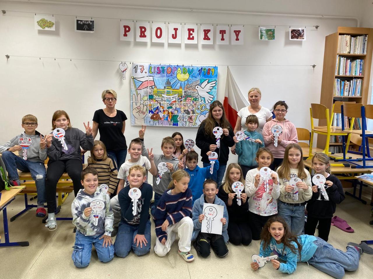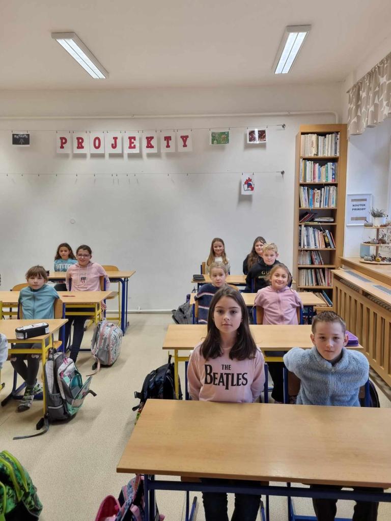 Čtvrťáci zahájili projekt s rukama za zády a se soudružkami učitelkami. Ochutnali cukrovinky z dob před revolucí a přestávku strávili chůzí po chodbě. Naštěstí se jim podařilo vyluštit kvíz a tak se ocitli v době Sametové revoluce a přivítali demokracii.