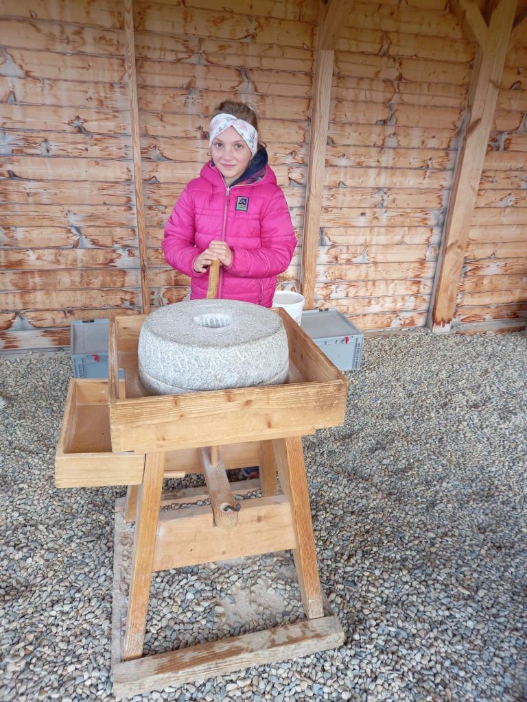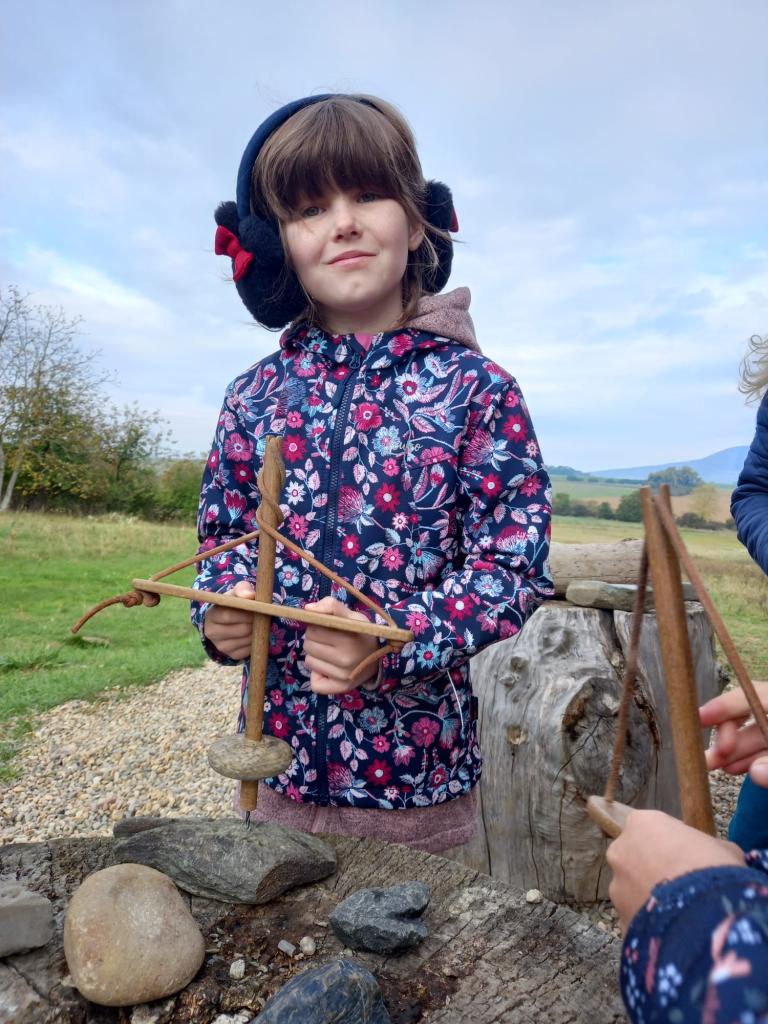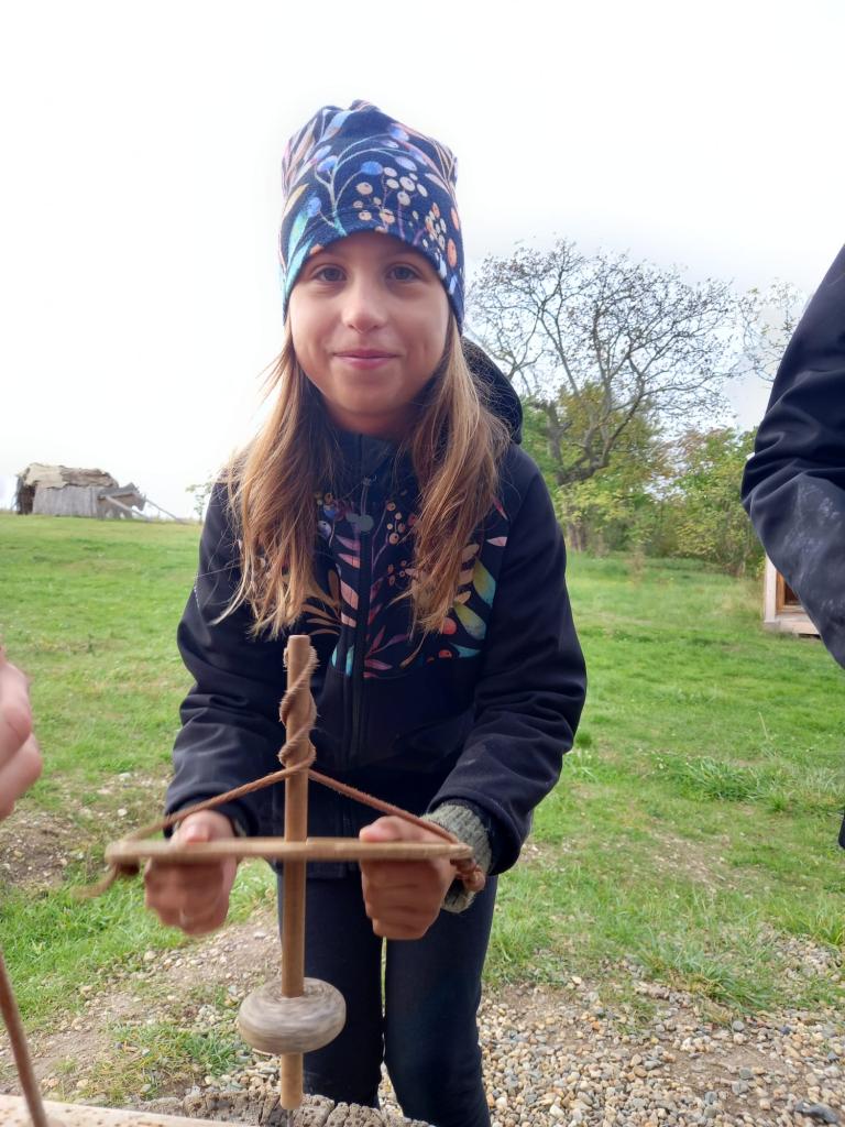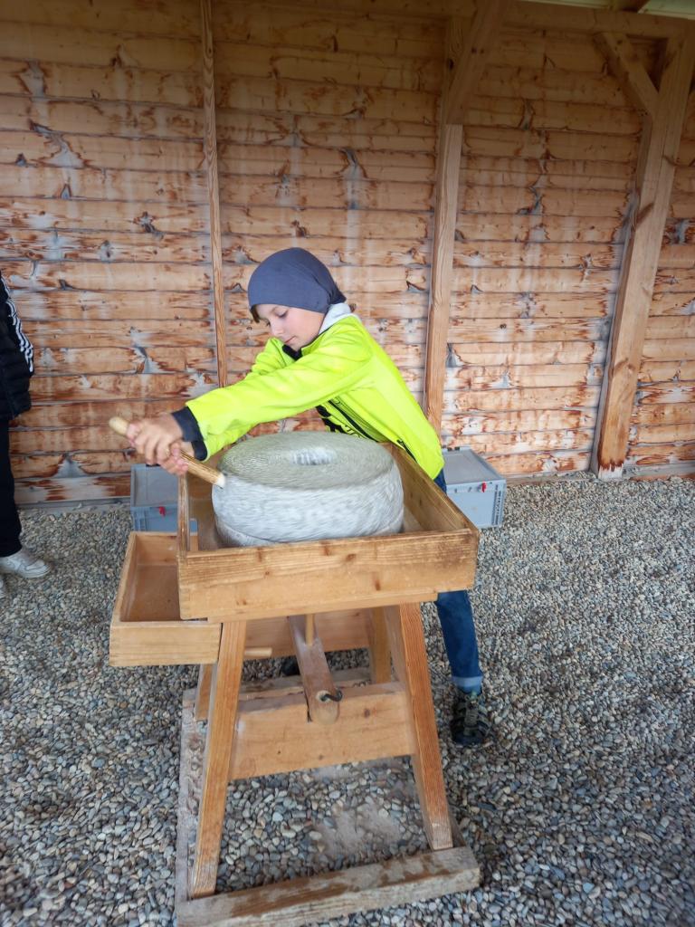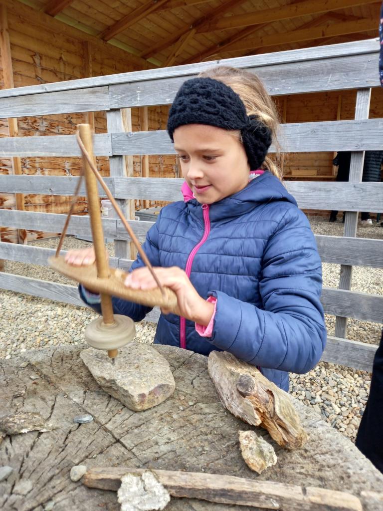 Čtvrtá a třetí třída jeli 1. října do Historyparku Ledčice. Mleli tam pšenici, vrtali díru do kamene a zkoušeli různá řemesla, třeba broušení kamene nebo tkaní. Potom šli na horu Říp. Bylo to stále do kopce a na vrcholu stála rotunda sv. Jiří a Vojtěcha z 11. století. Emma a Niky