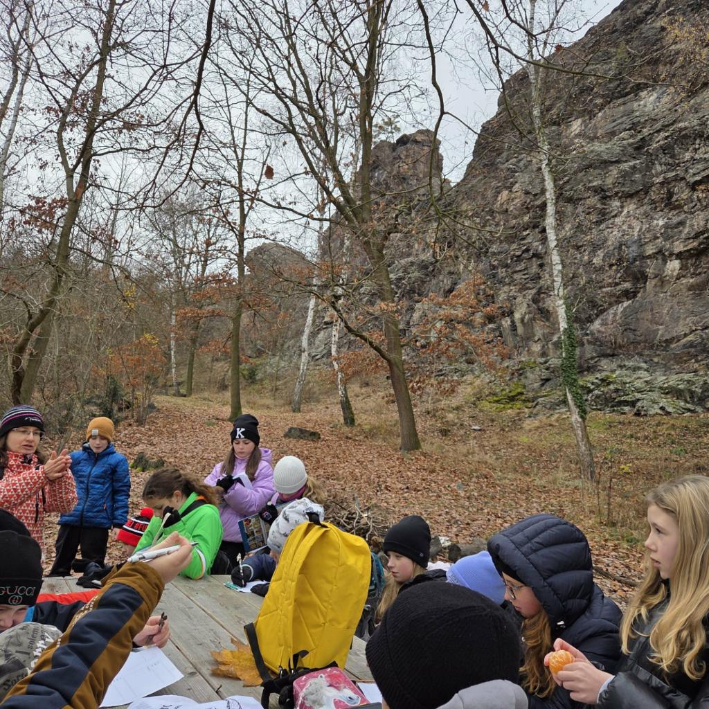 V pátek 21.11. vyrazili páťáci na procházku na Černolické skály v doprovodu paní lektorky - geografky a nadšené bioložky.
